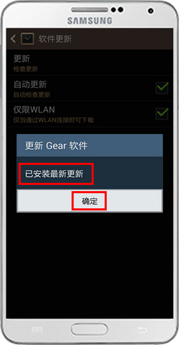 7、屏幕上显示“更新Gear软件”提示,点击【确定】。