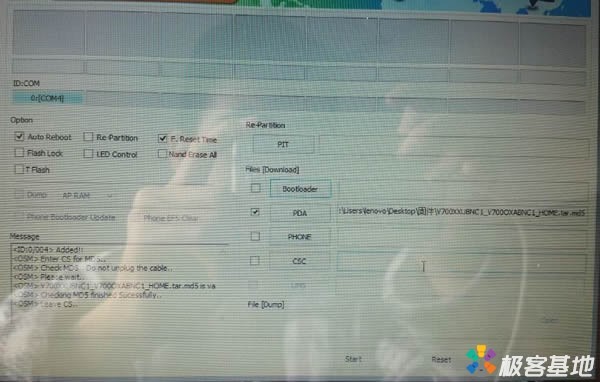 (5)选择PDA然后将固件文件夹里 V700XXUBNC1_V700OXABNC1_HOME.tar.md5 文件选择,如图。