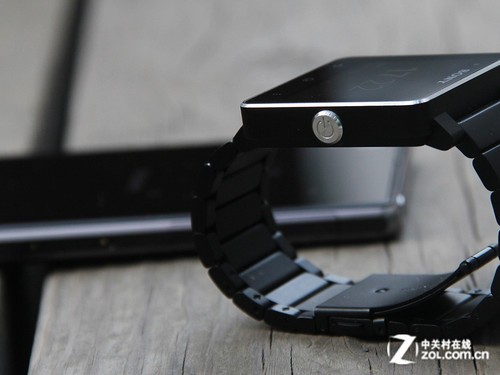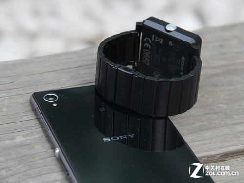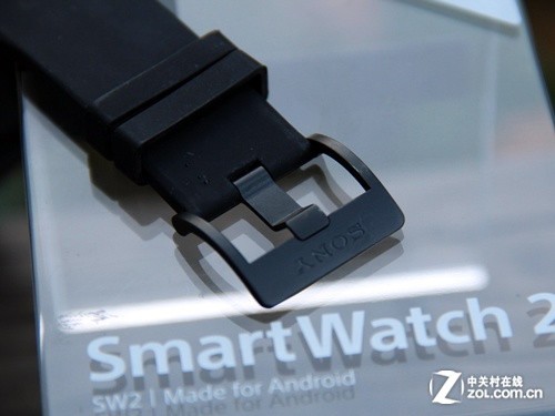 之前我们也说过了,SmartWatch 2有两种版本,我们今天体验的这款采用了金属表带,表带采用了黑色磨砂质感漆面喷涂,卡扣部分设计了“SONY”标识。