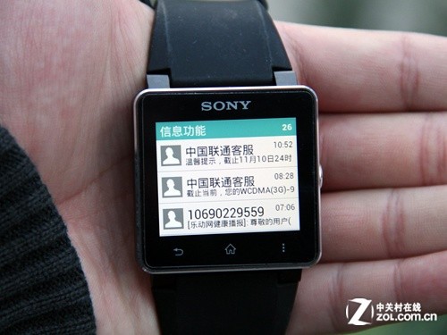 相对于三星Galaxy Gear而言,SmartWatch 2在功能方面并不算强大,它主要起到的作用是提醒+控制,提醒不用多说,就是短信、未接来电、新浪微博信息、人人网等信息的提醒,而控制就是可以通过SmartWatch 2来进行拨号、控制手机摄像头启动、控制手机播放音乐,用户无法通过它来进行直接的接打电话,它也没有设置摄像头供用户拍照,因此,我们可以把SmartWatch 2看作是提醒/辅助类的智能穿戴设备。