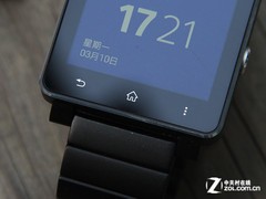 SmartWatch 2表盘部分的情况一目了然,上方正中设计了SONY LOGO,左侧有光感器,下方设计了三个安卓系统常见的功能键,相信大家已经都非常熟悉了,因此也不用多加赘述其功能和用法。