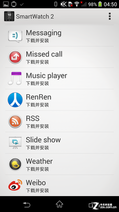通过NFC或蓝牙配对之后,就可以进入上方右图所示的LiveWare管理器里进行应用安装了,这时大家可以看到SmartWatch 2的主机应用程序还未进行安装。