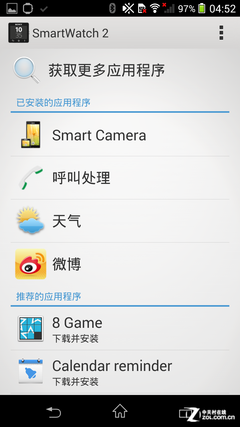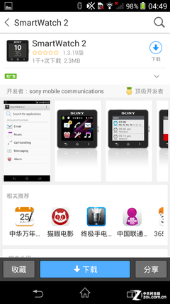 点击安装SmartWatch 2主机应用程序之后会弹出提示安装百度手机助手,安装完成之后会自动进入到SmartWatch 2主机应用程序界面,点击下载安装之后,再次回到LiveWare管理器,这时候就可以在手机上管理SmartWatch 2了。