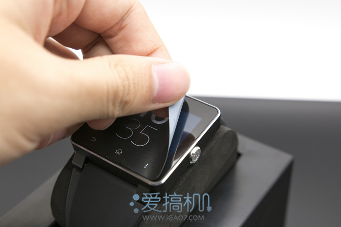 SmartWatch 2 外层还有一层保护贴膜,让我们先撕掉它。