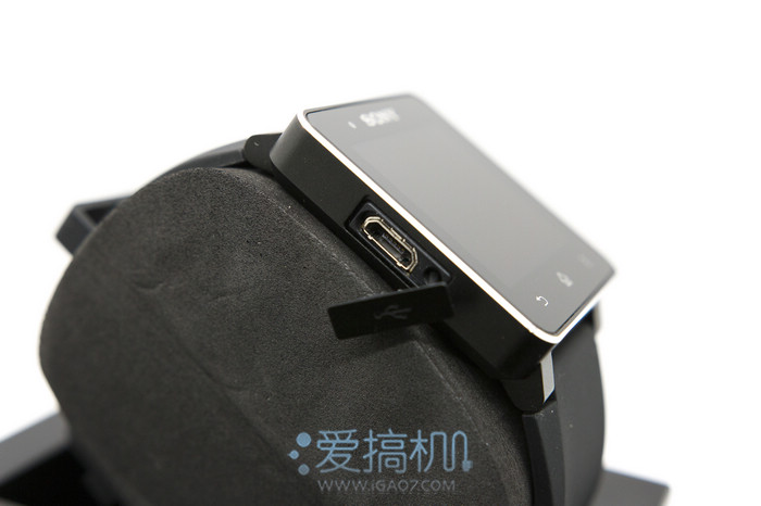 索尼SmartWatch 2表身两侧的设计非常简洁。左侧的是MicroUSB端口,主要作用就是给SmartWatch 2充电。索尼官方对SmartWatch 2的续航时间说明是省电使用7天,正常使用3-4天。纵观目前世面上在售的智能手表,SmartWatch 2的续航表现上佳。同时,改端口的盖子提供了密封处理,使SmartWatch 2支持防水功能,防水等级达到了IP57。作为一款穿戴设备,防水功能的支持是非常有必要的。