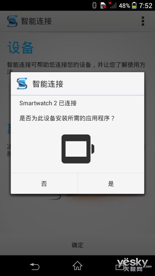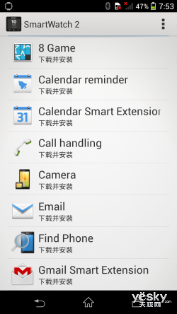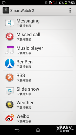 此时,手机端的智能连接程序会提醒你安装SmartWatch 2的专用程序,安装完毕后,我们就可以通过手机端来对SmartWatch 2的程序进行安装和卸载了。