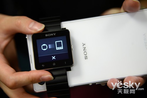 因此,SmartWatch 2想要与索尼手机进行连接很简单,打开手机端的NFC功能,然后像上图那样将两者标有NFC标识的部分互相靠近,当听到一声响后,两者间的连接便已建立。