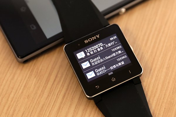 2、索尼设想的SmartWatch 2应用场景是作为智能手机的辅助工具,一些功能扩展可以在连接Android手机之后,在应用商店里下载,最有用的三个功能是查看短信/彩信、收邮件、操作通讯录拨打电话/拒接来电。