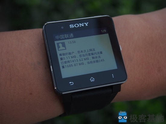从功能上来讲,我个人认为这块手表最重要的核心任务是消息通知,或者说目前所有无法脱离手机单独工作的智能手表的核心价值都是消息通知,手表让你摆脱了必须依靠手机收发信息的时代,解放双手。在加载相应的插件之后,索尼SmartWatch 2可以实现短信、邮件、社交网络等消息的实时推送,而这些信息内容能完整的显示在表盘上。