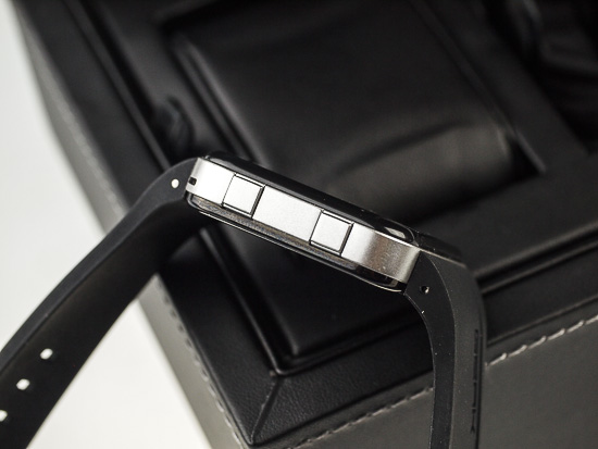 如果你需要查看时间的话,需要按下手表的按键,等待大约2秒钟的时间,方可在手表上查看到当前的时间。由于解锁屏幕需要另一只手来帮忙操作,所以当你在双手工作时,可能有些不便。不过通过我们的了解,果壳电子将会为GEAK Watch添加甩手开屏显示的新功能,通过软件升级强化手表的各项功能。