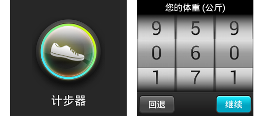 计步器功能可检测你每日的步行数字,以推测你当日所消耗的卡路里数量,是一个比较基础的个人生理检测应用。初次使用需要填写个人的体重、身高,设定目标步数等,然后就可以戴着手表随意行走了。