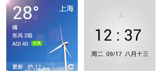 表盘时钟支持天气预报,还可更改为简易的数字表盘