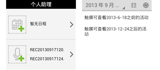 个人助理类似于将个人的形成录入到手表之中,方便你日常的快速查询。个人日程支持手机日历的公布工作,如果你之前曾在手机端的日历上记录下你当日的行程安排,那么在与手机同步后,你的日程安排也会被放置在手表之中。此外个人助理也支持语音录制,通过手表的快捷功能键进入语音备忘录功能,就可快速将语音信息保存在你的个人助理功能中了。