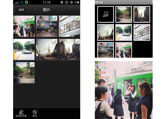 在手机同步软件中选择需要上传同步的照片 点击发送至手机即可