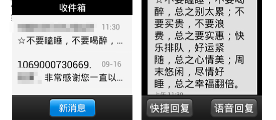 可查看短信,并做快捷回复,快捷短语可以在手机同步软件中设定