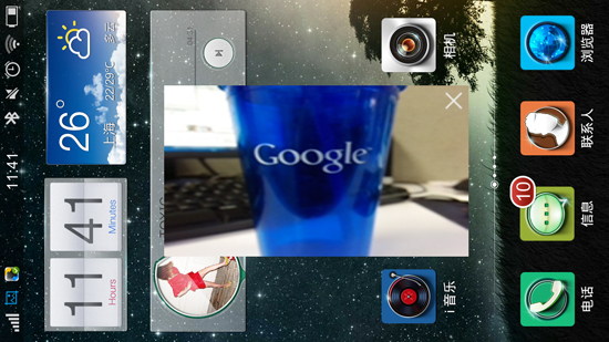 通知栏显示电量、网络连接和时间等信息,同时可进入详细的系统设置和应用设置