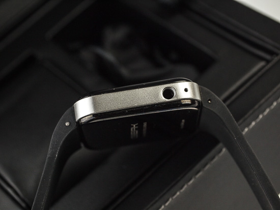 GEAK Watch机身右侧侧面设计有2个物理按键,左侧配有3.5mm的耳机接口,表身边角留有扩音孔。3.5mm的耳机接口不仅负责耳机接入使用,还充当着数据传输和充电这多种功能。至此,GEAK Watch的表身上就没有多余的按键和接口了,一切都工作都需要通过物理按键配合触摸屏操作即可完成。