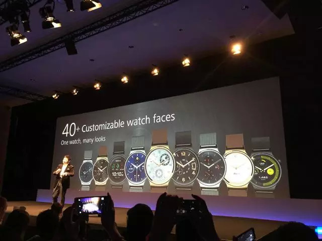 华为Watch的表面大小延续了传统手表的直径42mm,提供了40种可定制的表面和多种材质的表带设计,包括有耐腐蚀的钛钢、抗过敏的橡胶、古典一些的皮质,时尚点的帆布等种类。