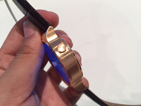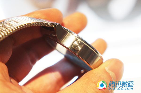 还有一点就是华为Watch的表身右侧配有一个实体按钮,使得其整体上看起来更接近一款传统手表,该按钮可以使表面在传统界面和智能界面之间切换。经过现场体验,还是很灵敏的,同时处于表身两点钟方向的位置也十分方便操作。给人一种注重细节的感觉。