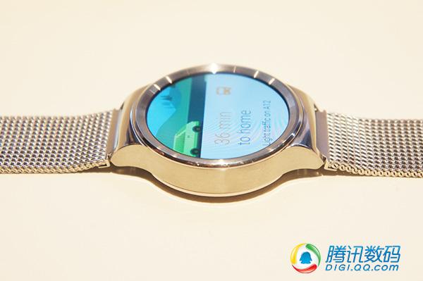 而拿在手上来看的体验与参数相符,表盘显示内容即使是文字也没有明显的颗粒感,相比我们更熟悉的Moto 360有着非常明显的提升。