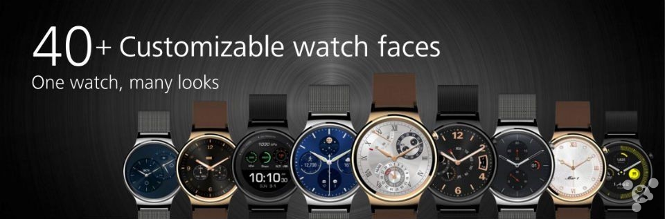 为满足消费者个性化的需求,华为 Watch有银、黑、金三种颜色可选,并有不同材质的表带可供选择。更贴心的是,华为设计了40多款不同风格的表面,包括经典风格表盘、数字风格表盘以及运动风格表盘。除了华为 Watch智能手表外,华为还发布了智能项链TalkBand N1和智能手环TalkBand B2。其中智能手环TalkBand B2是华为的第二款手环,采用可分离式设计,能够单独作为蓝牙耳机使用。