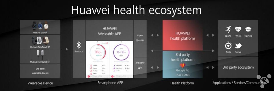 华为 Watch 带来了最新的健康生态系统,利用 Huawei Wear 应用可与包括 Google Fit、Jawbone UP 在内的平台进行连接,为用户提供更全面的健康数据分析。