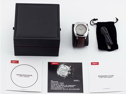 果壳智能圆表(GEAK WATCH II)包装采用外层纸盒内层礼盒包装,在配件方面果壳手表提供了:手表x1、包装礼盒x1、充电线(含包装袋)x1、使用指南x1、三包证明、手表创意自我介绍x1,配件方面与其他智能手表或智能手环的配件差不多。