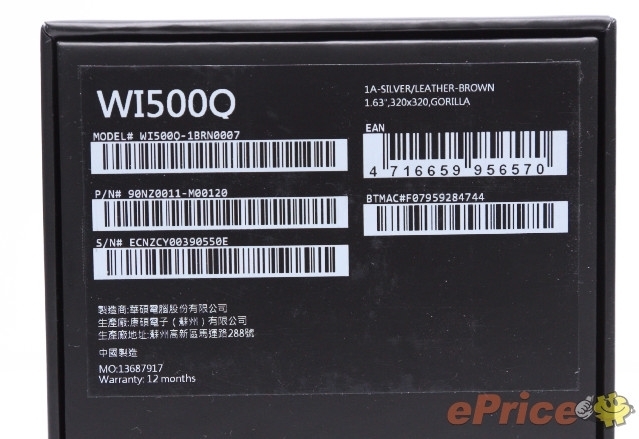 ▲盒装底部有写上 WI500Q 这个产品型号之外,也有标注 ZenWatch 是中国制造。