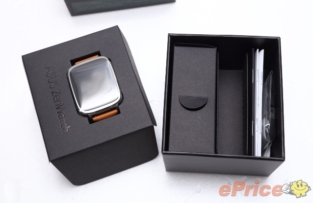 ▲采用方型黑色盒装的 ZenWatch,虽然样式低调但盒装质感不错。