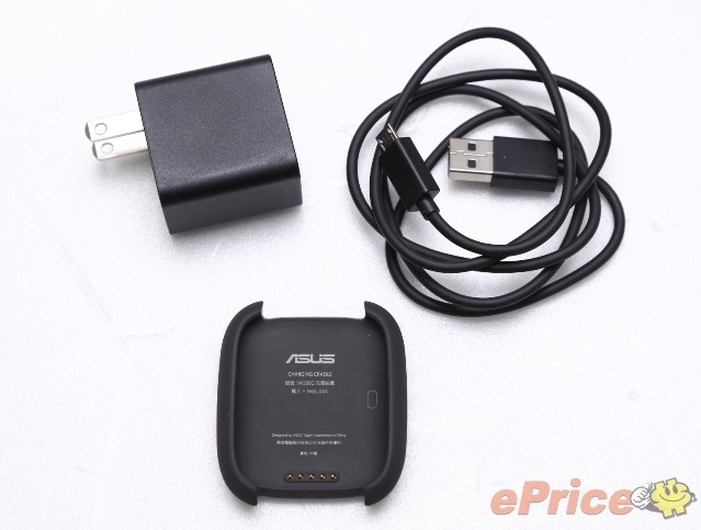 ▲除了手表本体、说明书之外,盒装内还会附赠变压器、USB 充电线以及专属的充电背盖。