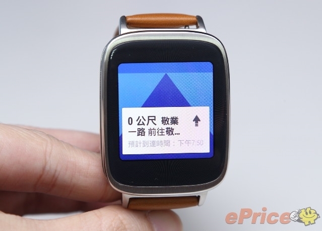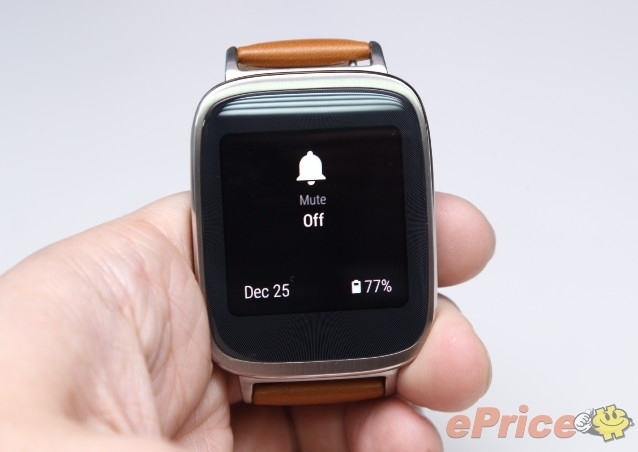 不过 ZenWatch 虽然质感出色,但因为 1.63 吋的屏幕周边留了太多边框空间,所以让整个表面看来面积偏大,虽然带在手够粗的男性朋友手上不是问题,但对于女性或是手比较纤细的男性来说,佩带起来就真的会比较突兀一点。还有,尽管 ZenWatch 随机配置的皮革表带质感很优,但因为皮革怕水所以不适合戴著去运动。不过 ZenWatch 的原厂表带是采用快拆式设计,而且是 22 mm 标准规格,所以若你真的想戴著去运动,不妨自行添购橡胶表带视使用状况来加以替换。