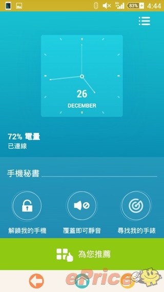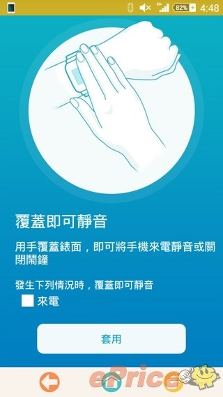 ▲ZenWatch Manager 还具备覆盖屏幕静音这项功能,启动后若是有来电,只要把手掌盖住就可让手机立即静音。