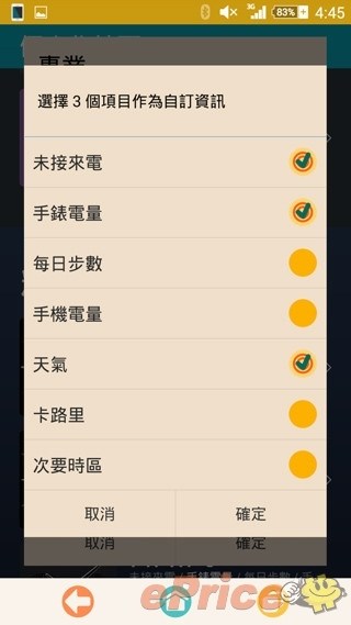 ▲进阶一点的表面则是可以选择三种要显示在表面上的资讯。