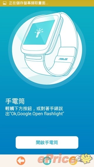 ▲ZenWatch Manager 还有内置一个手电筒功能,但开启之后就只是会把 ZenWatch 的屏幕变成持续发光的蓝色画面而已。