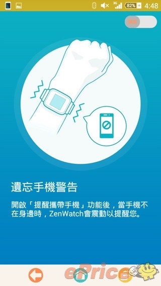 ▲手机常常不小心忘记带?ZenWatch Manager 有内置警告功能,只要手机超出可和手表连结范围,手表端就会立即震动警示,告诉你手机不在附近。