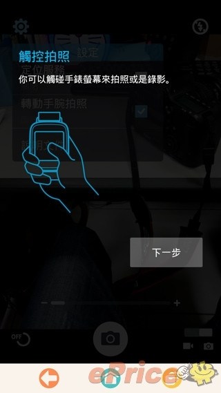 ▲可透过点选手表屏幕来拍照,也能利用转动手腕的动作来启动快门。