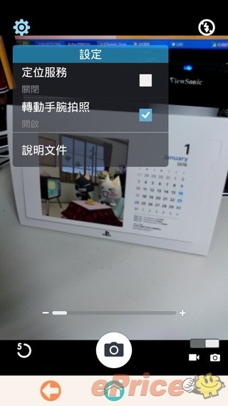▲可从屏幕下方拉出设定选单,可在此切换成录影模式,或是开启定时自拍功能。