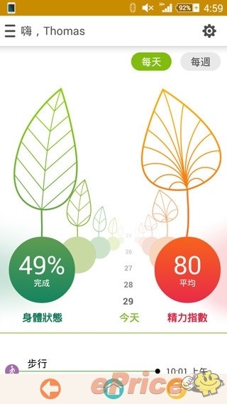 最后一个由华硕特制的 App:ZenWatch Wellness,其实就是一个穿戴装置不可或缺的健康追踪软件,它可以整合计步器和心率侦测器的数据,把你走路的距离换算成消耗的卡路里,然后也能依据心率侦测器的数据,推测出你的身体放松指数或运动的强度。老实说 ZenWatch Wellness 的功能并不算多,但用起来简单好上手,对于非重度的运动爱好者来说应该还算够用。