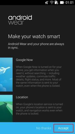 ZenWatch 与手机或平板的连线需透过蓝芽及 "Android Wear" 这个 app