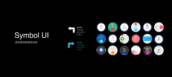 界面设计方面,在目前智能手表以圆形和方形为主的情况下,TencentOS针对用户使用传统手表的习惯和手表小屏幕的特性,打造Symbol UI——用极简的图形化语言准确地表达信息。由于简洁的符号比文字包含更多信息,用户在日常生活中的使用习惯能够更轻松获得信息。