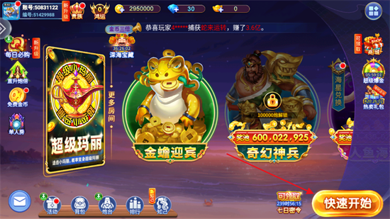 2、万倍炮台秒变土豪,超高爆率瞬间翻盘。