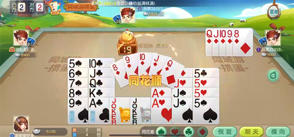 所有玩家准备好后,系统会开始发牌,同城游掼蛋系统展示本局打2。