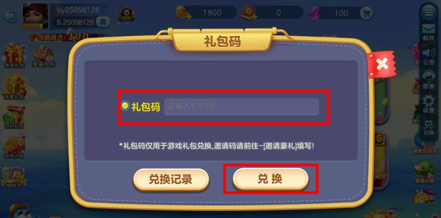 3.在出现的弹窗中输入兑换码,然后点击兑换即可兑换