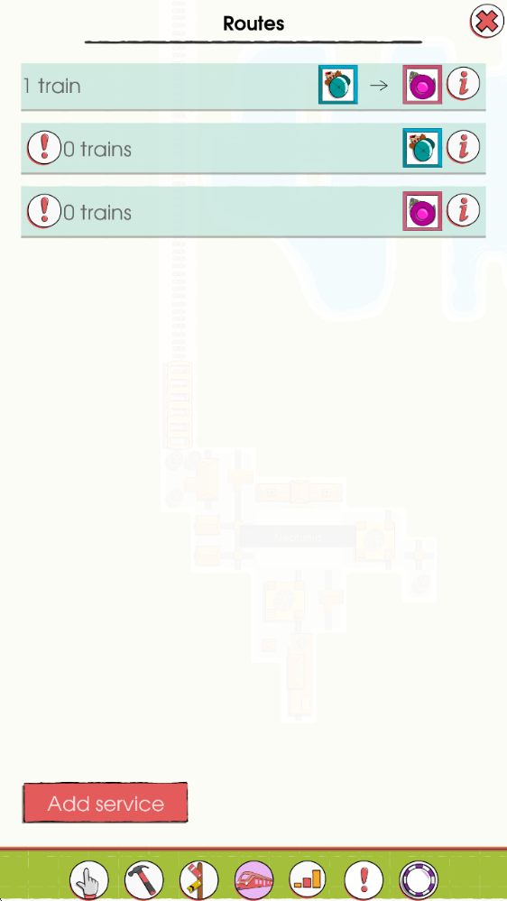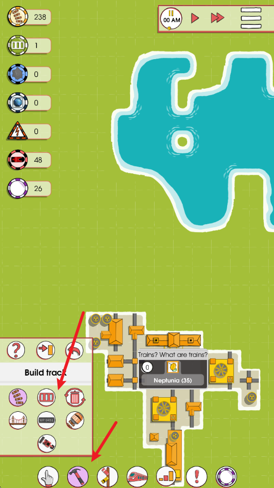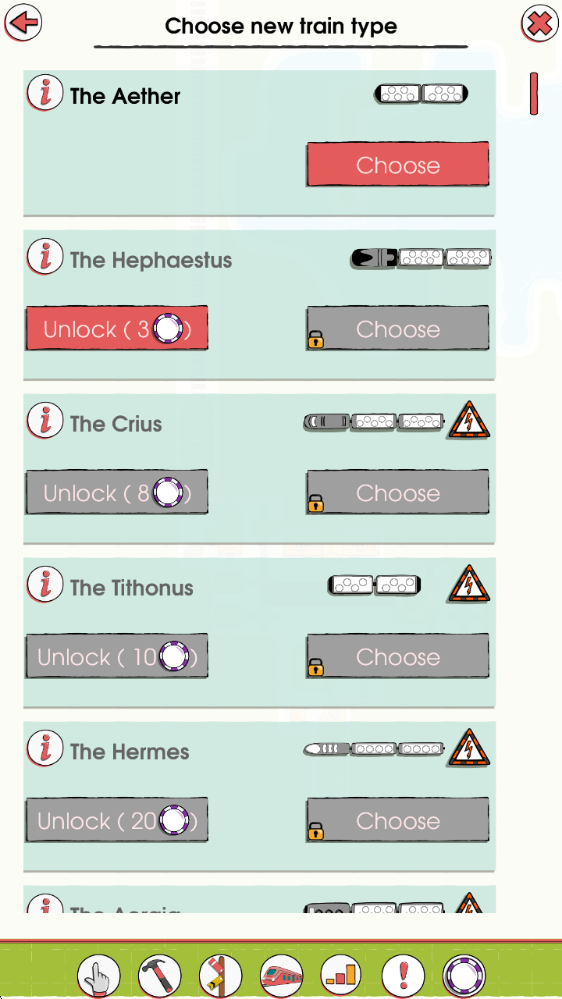 1、进入游戏后,点击下方的锤子图案,在这里可以选择各种铁路进行建设。