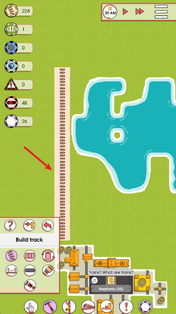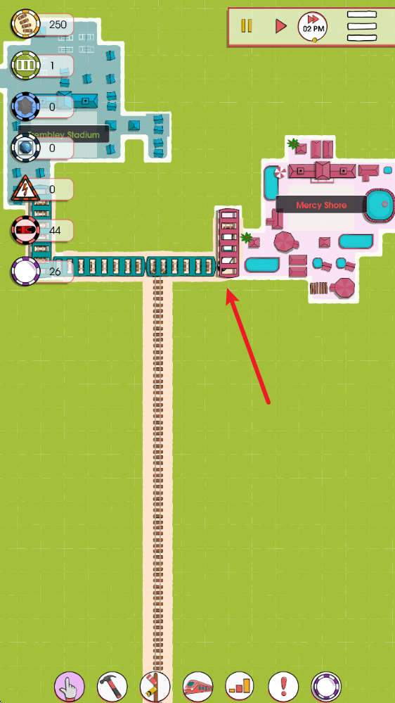 2、选择好铁路后,长按然后拖动即可搭建出一条铁路,连接在两个站点之间。