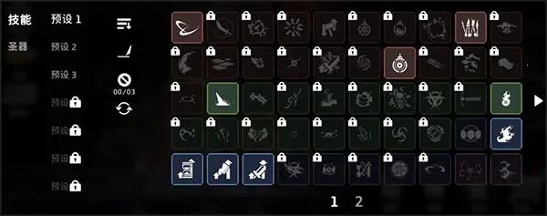 技能预设指的是你在进入地牢前可以手动选择你想要携带的技能种类,可以通过禁用按钮来限制不想要的技能。如果你是擅长武器技能的角色,优先武器增伤、武器降低冷却等等;如果你是擅长位移操作和普攻的玩家,优先选择移速、普攻特效的技能。