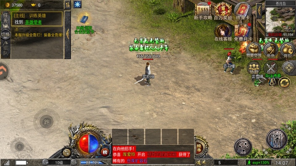 1.套装和神兵系统,通过获取更多的低级装备可以直接向上合成高级装备,集齐特定结束套装可以解锁新的神兵,获得新的武器外观