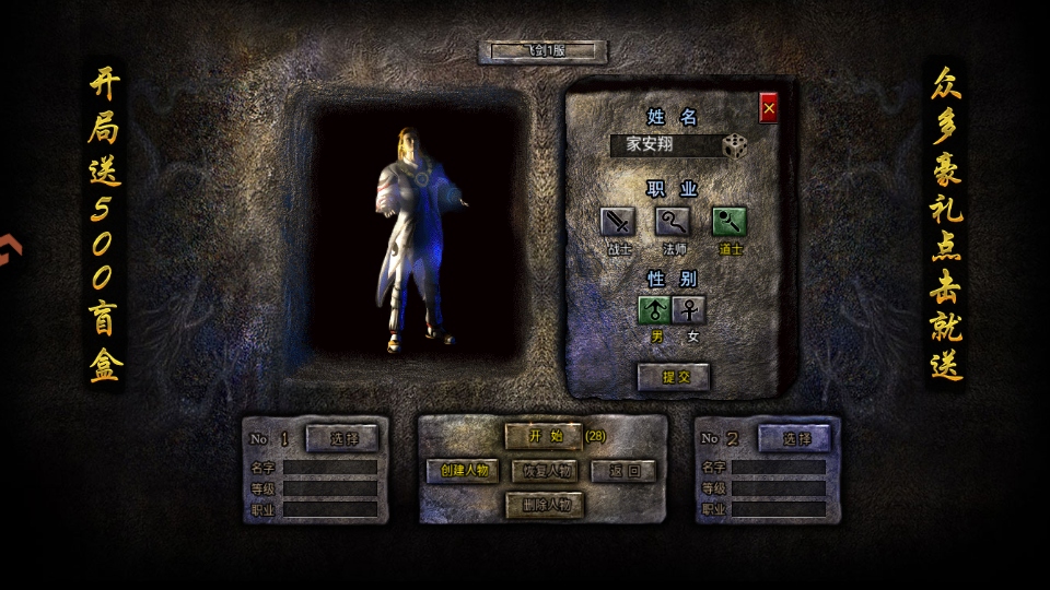 2.该款传奇采用三职业玩法,1选择一个你喜欢的职业。