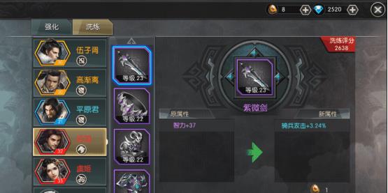 属性的选择,我们要选择对当前佩戴这个装备的武将有用的属性!就比如楼主的项羽,是个骑兵,但初始的属性却是智力加成,很明显并没有什么用处,因此就必须要洗练成有用的,比如骑兵攻击加成,而其他属性的洗练也是如此,首先要选择加成的是当前武将兵种的属性,其次在这个范围之内挑选自己认为最合适的,这样才能打造出一件极品的属性装备