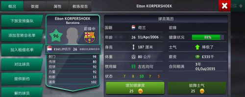 4、当然现在很多人都要问我的转世租出去21或者20了他只要60多,70多怎么办,现在郑重告诉大家23岁以前一切皆有可能,如果不行就等到24岁,一般23岁左右一个转世有75+的能力就合格,你要想想一个球员现实中巅峰是25到28岁,别再整天怕你转世年龄大了分还很低,当他有个差不多评分你就拉他回来打主力或者租到高级联赛,低级联赛已经无法让他提升了。